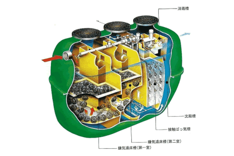 家庭より排出される屎尿や生活雑排水を処理する合併浄化槽や、工業廃水を処理する設備、その設計・施工・メンテナンス等の管理業務を取り扱っています。